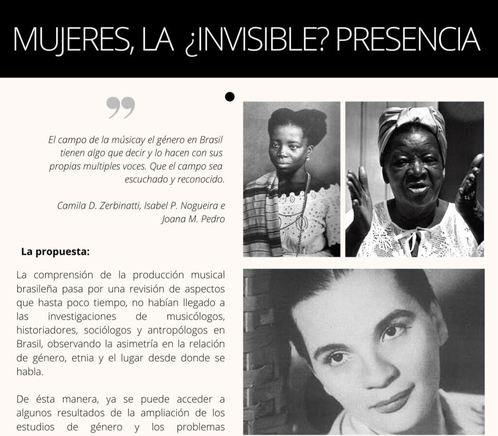 De estas preguntas, junto con mi experiencia como cantante en la escena barcelonesa y las investigaciones académicas que desarrollo, nació una tríada de encuentros. En ellos discutimos la cultura musical brasileña desde una perspectiva interseccional, afrofeminista y decolonial, en diálogo también con los Estudios Culturales.